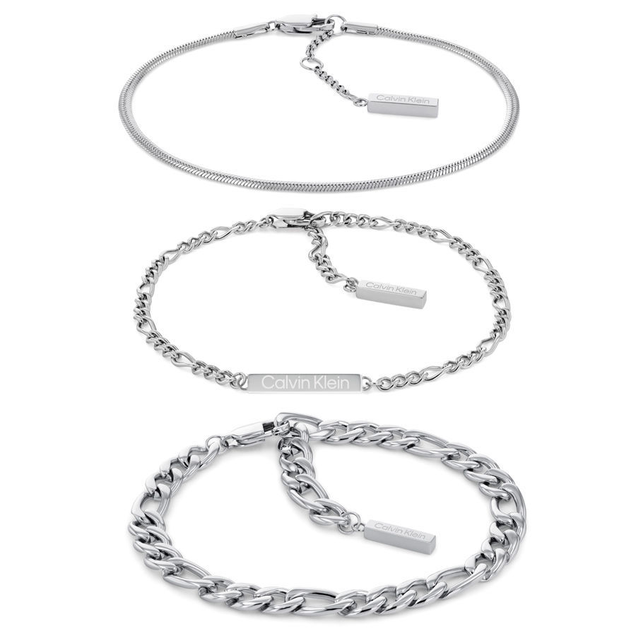Classic links. Set of three chain linked bracelets characterized by their distinctive silhouettes and designs. Two-year international warranty.